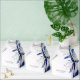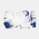 A luxurious layout featuring vibrant navy blue flowers, satin ribbons, and delicate white floral accents. This elegant and ornate design is ideal for formal weddings with a classic or glamourous aesthetic.