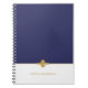 Keep track of all important notes in this chic notebook. Personalise with your name or company name. It features navy blue and white with decorative gold dots divider.
