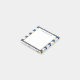 The design features a modern navy blue and white stripe pattern with gold glitter confetti dot accents.