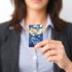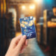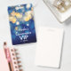 An elegant design of blue, navy, gold blurred lights, this Quinceañera birthday party invitation and VIP pass is printed on an unique plastic badge - order with or without a lanyard. MATCHING items in our store.