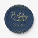 Chic Navy Gold Glitter Confetti Birthday Party Paper Plate