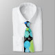 A chic Necktie, with a quirky abstract pattern in bright blues and neon green on a black background; from a handpainted paper collage design by Judy Adamson. Part of the Posh & Painterly 'Blue Moons' collection.