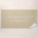 Chic beige sand monogrammed beach towel with the large text Mr and Mrs in white elegant script. The colour ancestral gold is used for this luxurious beach towel you can customise with your married name. Perfect gift for the newlywed couple. Exclusively designed for you by Happy Dolphin Studio.