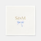 This chic and stylish off white wedding napkin features a contemporary font in faux gold alongside a lovely trendy blue ribbon and couple initials.