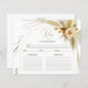 Bridal Shower recipe card. Chic Pampas Grass Boho collection. Beautiful modern foliage grasses.