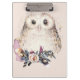 Chic Pastel Flower Owl Animal Boho Illustration Clipboard