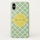 A chic pastel spring green quatrefoil Barely There iPhone X Case with a bright yellow monogram badge you can personalise by adding your name and initial to. This is part of the Nile Green and Meadow Lark Yellow Spring Collection.