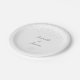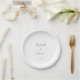 Chic silver grey pearls and white calligraphy on white background Wedding Paper Plate.