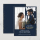Celebrate your enduring love with our "We Still Do" Navy Blue & Gold Photo overlay Vow Renewal Wedding Invitation. This invitation perfectly captures the essence of your special milestone. The elegant script title adds a touch of charm, while the navy blue background provides a classic backdrop. Featuring fancy Navy blue script lettering, the design exudes simplicity and sophistication. Your cherished photo takes centre stage in an oval frame, adorned with faux foil lace frills for a touch of elegance. It's the perfect way to invite your loved ones to join in the joyous celebration of your enduring commitment.