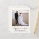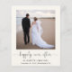 Chic budget-friendly light cream elopement / private wedding announcement and post-wedding reception invitation that features your photo, "happily ever after" in a stylish script with swashes and your first names, wedding date and location. On the reverse side, personalise your announcement and invitation, input your wedding website URL address to create a QR code for guests to scan to see your wedding photos, all the details and to RSVP online and sign your married names in a signature-like script.