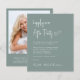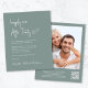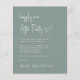Budget-friendly sage green wedding reception invitation featuring "Happily Ever After Party" in a chic white script, your invitation in classic white serif typography and your names in a signature-like white script. On the back, add your photo and input your wedding website address to create a QR code that your guests can scan to RSVP online and obtain additional details.