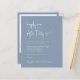 Budget-friendly dusty blue wedding reception invitation featuring "Happily Ever After Party" in a chic white script, your invitation in classic white serif typography and your names in a signature-like script. On the back, upload your photo and input your wedding website address to create a QR code that your guests can scan to RSVP online and obtain additional details.