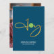 Stylishly elegant Pickleball Christmas photo card. Scripted message "Joy" in gold with a neon lime green ball serving as the letter "o". Large photo and personal holiday message. Scripted and minimalist typography. Bold modern background colour. Perfect for those that appreciate simplicity, understated elegance and a love of the game. Contact for assistance in personalising or customising to your individual wishes. Happy Holidays!
