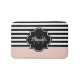 Chic Pink and Black Wide Stripes Name and Monogram Bath Mat