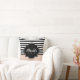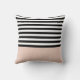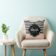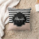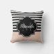 Chic Pink and Black Wide Stripes Name and Monogram Cushion