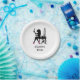 Personalise by adding your name to these chic and stylish paper plates with a silhouette of a woman of fashion, wearing hot pink high healed shoes with cute bows, sitting at a makeup vanity and admiring her girly fashionista reflection in a mirror.