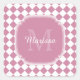Chic Pink and White Checked Monogrammed Name Square Sticker
