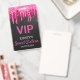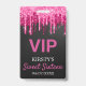 Chic Sweet Sixteen Birthday VIP badge features a black background with pink dripping glitter.
