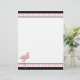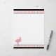 Chic white letterhead stationery, with graphics of a pink and white striped header and footer, with black borders. Graphics of a pretty pink flamingo decorates the bottom left corner of the letterhead. Customise to add your own text.