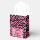 Pink and black leopard print pattern tent style favour boxes feature your thank you message on pink faux foil on the front in chic lettering and a ribbon closure. Beautiful for birthday party favour boxes and more. MATCHING items in our store.