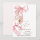Chic Pink Bow Pearls Cross Baptism Invitation