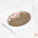 This stylish personalised Wedding oval shaped stickers has a soft pink hibiscus floral design at the top with a brown coloured background. At the bottom, you can easily customise the names of the bride and groom along with the date of the wedding ceremony. This is part of a matching Wedding Invitation set that could be used for a spring or summer wedding.