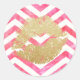 Chic Pink Chevron Gold Lips Valentine's Day Classic Round Sticker