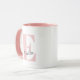 Elegant chic pastel pink Personal Mug with your customisable Monogram and Name. A wonderful timeless gift for wives, daughters, sisters, best friends, brides, a bridesmaid for any occasion for birthdays, Christmas, wedding, bridal shower. A simple modern design to take to the office, your home office, college, student dorm.
