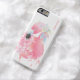 Pretty iPhone 6 case, with a watercolor print of a pink flamingo, with colourful flowers and feathers, decorating it's head. Personalise the coral pink text, for yourself or as a great gift to her.