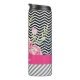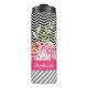 A chic pink floral thermal tumbler with a trendy black and white chevron pattern background on the top and grey and white diagonal stripes on the bottom. Make it uniquely yours by adding your name to the girly hot pink stripe.