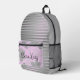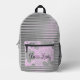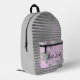 Chic Pink Floral Silver Stripes "Boss Lady" Printed Backpack