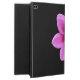 Pretty iPad Air 2 case done in jet black, with a photograph of a large pink flower bloom. Personalise the pink text, on the front of the case, to suit your needs.