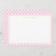 On the front side this chic personalised note cards features thick pink gingham pattern border and thin gold border and on the back is pink gingham pattern.