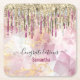 Chic pink gold glitter drips monogram square paper coaster