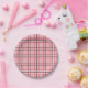 Chic Pink & Grey Plaid Fashion Pattern Party Paper Plate