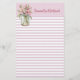 Pretty custom stationery, done in a pink and white lined pattern. A pink and white polka dot header is decorated with a colourful mason jar with pink lilies, on the left and dark pink custom text. Personalise the text to suit your needs. Makes a nice gift too.