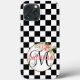 Chic pink monogram flower black & white chequered Case-Mate iPhone case