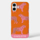 Chic Pink Orange Tiger Pattern Personalised Name Case-Mate iPhone Case