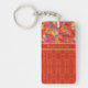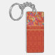 A chic Oblong Acrylic Keychain to personalise, with Orange, Yellow and Pink Poppies on a Sky Blue background, teamed with a coordinating red damask-like pattern. This bright, floral design is part of the Posh & Painterly 'Poppy Fields' collection.