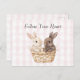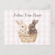 Chic Pink Plaid Stripes Bunnies in a basket Easter Postcard