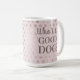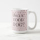 Celebrate the joy of having a pet with this chic and fabulous pink polka dot dog photo coffee mug. This design features a two-tone pink background with a place to put a photo of your pet and customise with your pet's name. The other side of the mug has text that says "Who's a GOOD DOG?