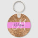 Chic Pink & Pumpkin Glitter Sparkles Monogram Name Key Ring