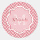 Chic Pink Quatrefoil Monogram With Name Classic Round Sticker