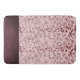 On this stylish bath mat is a pink rose blush marble pattern with dramatic glittery purple edging creating extra glam for any bathroom decor.