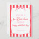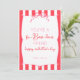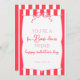 The design showcases a pink and white striped border with a scalloped central frame, accented by a decorative pink bow at the top. Its cheerful pink and white colour palette, combined with a mix of font styles and sizes, creates a playful and elegant composition.
