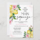This floral lemon themed bridal shower invitation features whole lemon and lemon slice arrangements with bold pink flowers. This she found her main squeeze bridal shower invitation also features a modern calligraphy word and pink ribbon corners.