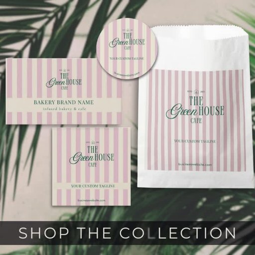 Chic Pink Stripes Green Bakery Logo QR Price Rack Card