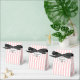 Pretty feminine occasion favour gift box done in pink and white stripes. A black and white decorative text area, on the flap, has black custom text simply reading Thanks.