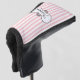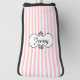 Pretty feminine golf putter cover done in pink and white stripes. A black and white decorative text area has black custom text ready to personalise. Matching lady's golf accessories are available.