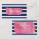 Chic Pink Watercolor Blue Stripes Makeup Artist Business Card